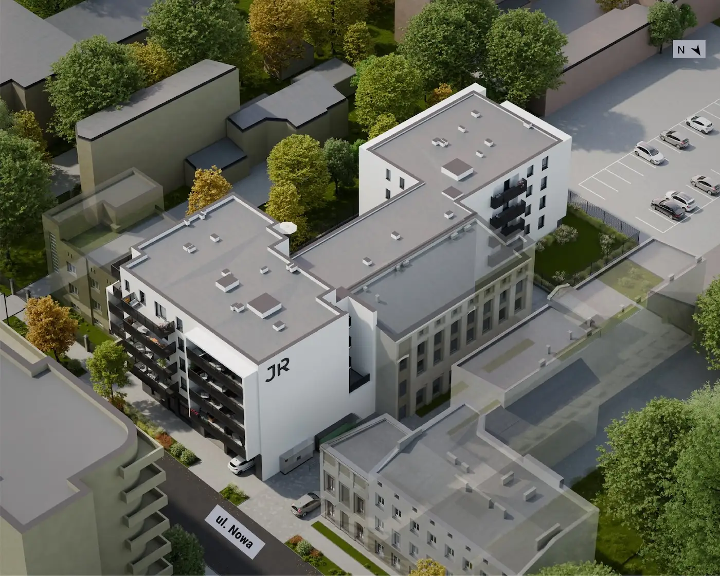JR NOWA już na pierwszy rzut oka wyróżnia się na tle okolicznych zabudowań – łączy nowoczesną architekturę z eleganckimi, wysokiej klasy materiałami wykończeniowymi, które gwarantują doskonałą estetykę na lata.
